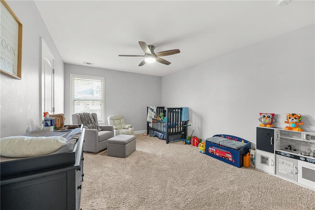 The crown jewel of this exceptional Lakeside Preserve home is the luxurious primary suite, where a striking double-sided fireplace creates warmth and ambiance between the bedroom and an expansive private sitting area transforming the space into a true owner's retreat. This sense of comfort and elegance continues throughout nearly 5,000 square feet of beautifully designed living space, featuring soaring 10+ foot ceilings, rich hardwood floors, and an oversized family room with its own fireplace, perfect for gatherings and cozy evenings alike. The open-concept kitchen with stainless steel appliances flows effortlessly into the main living areas, while the main-level guest or in-law suite, dedicated home office, and formal dining room offer both flexibility and function. Upstairs, a generous secondary living or media space adds another layer of versatility, and outside, the fully fenced backyard provides a peaceful escape. With extensive updates including a new roof (2023), new HVAC compressor (2025), new doors, WiFi-enabled garage doors, and a full-home ADT security system, this home delivers modern confidence alongside timeless style. Ideally located less than 15 minutes from Hartsfield-Jackson Airport with quick access to I-285, I-85, and Camp Creek Parkway, and paired with resort-style amenities clubhouse, pools with waterslide, fitness center, tennis and basketball courts, and lake access this home offers not just a place to live, but a lifestyle to love.